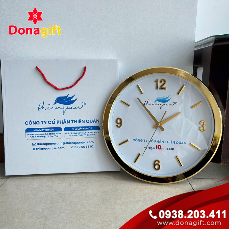 Nếu bạn muốn đặt đồng hồ treo tường in logo chất lượng và đáng tin cậy, đừng bỏ qua Donagift. Chúng tôi cam kết cung cấp những sản phẩm tốt nhất với mức giá hợp lý nhất. Liên hệ ngay đến Hotline 0938203411 để nhận được sự tư vấn tận tình ngay hôm nay!
