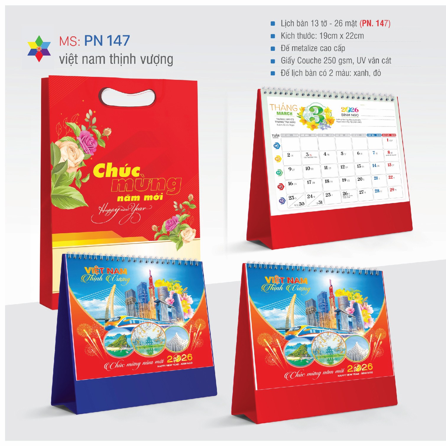 | 7 | Lịch bàn A (ko túi) | 27,000 | Túi vải 3.250 / Kẽm 221.000 Ép kim dưới 100 tính lô 325.000 |